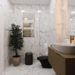 Krem tonlarda sıcak ve yumuşak bir hava, beyaz tonlarda ise ferah ve modern bir görünüm elde edildi. Her iki renk de zarif detaylarla birleşerek banyoya sade bir lüks kattı. 💫